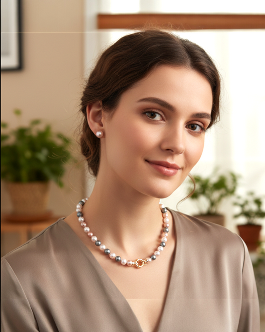 Juego Collar y Aretes | De Perlas Mallorca | Salmón Bicolor 8MM
