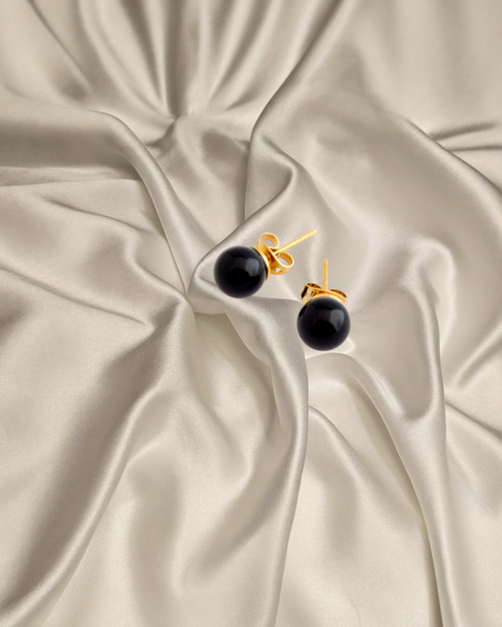 Aretes de Perla Mallorca | Tipo Broquel Negro 8mm