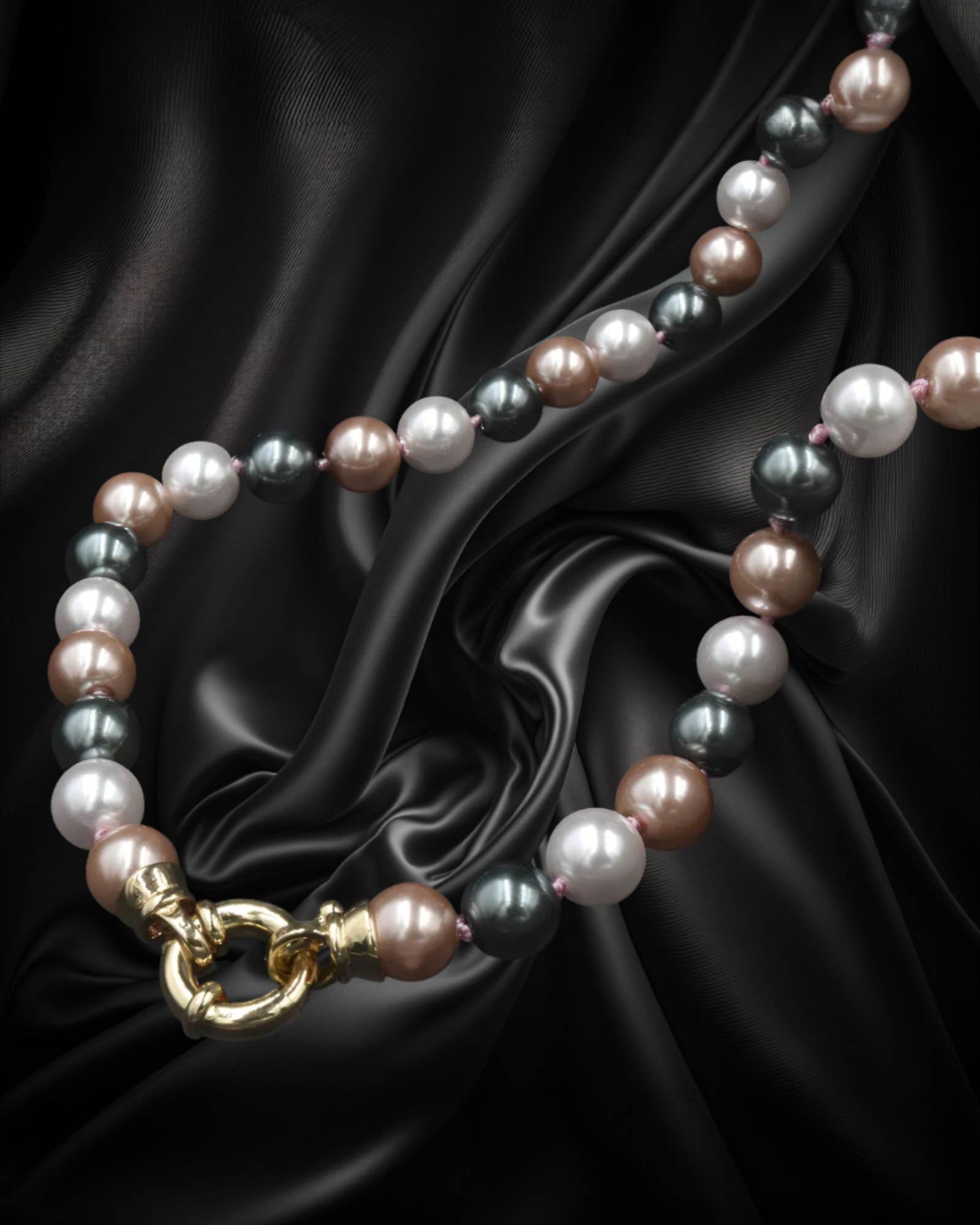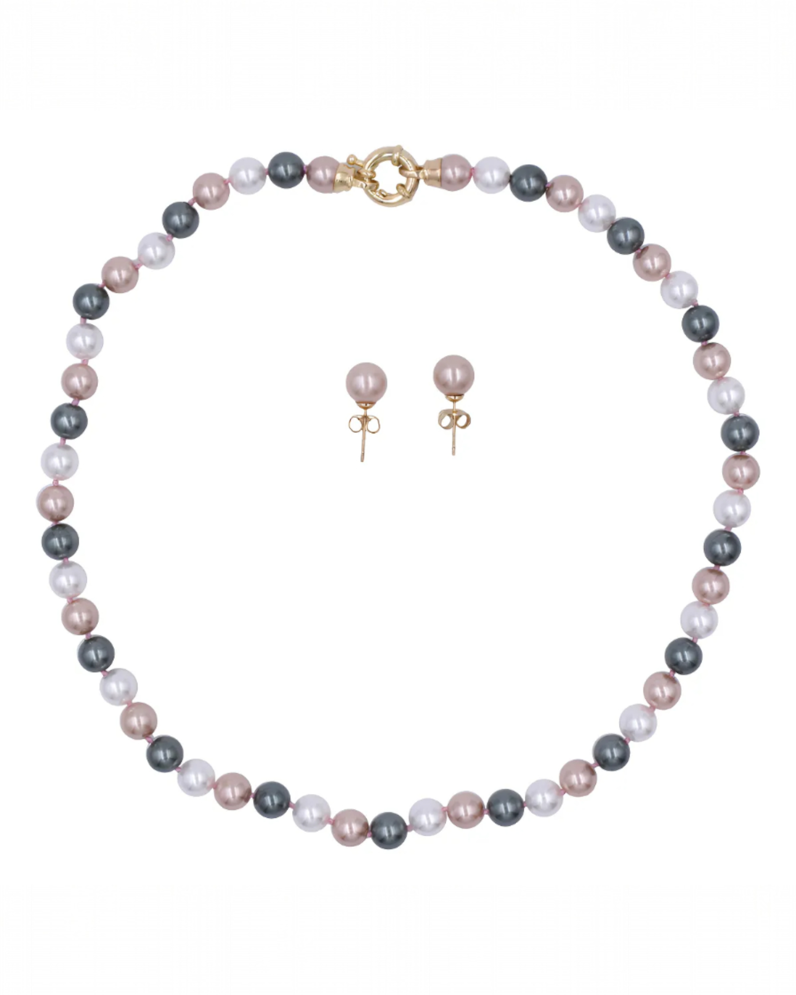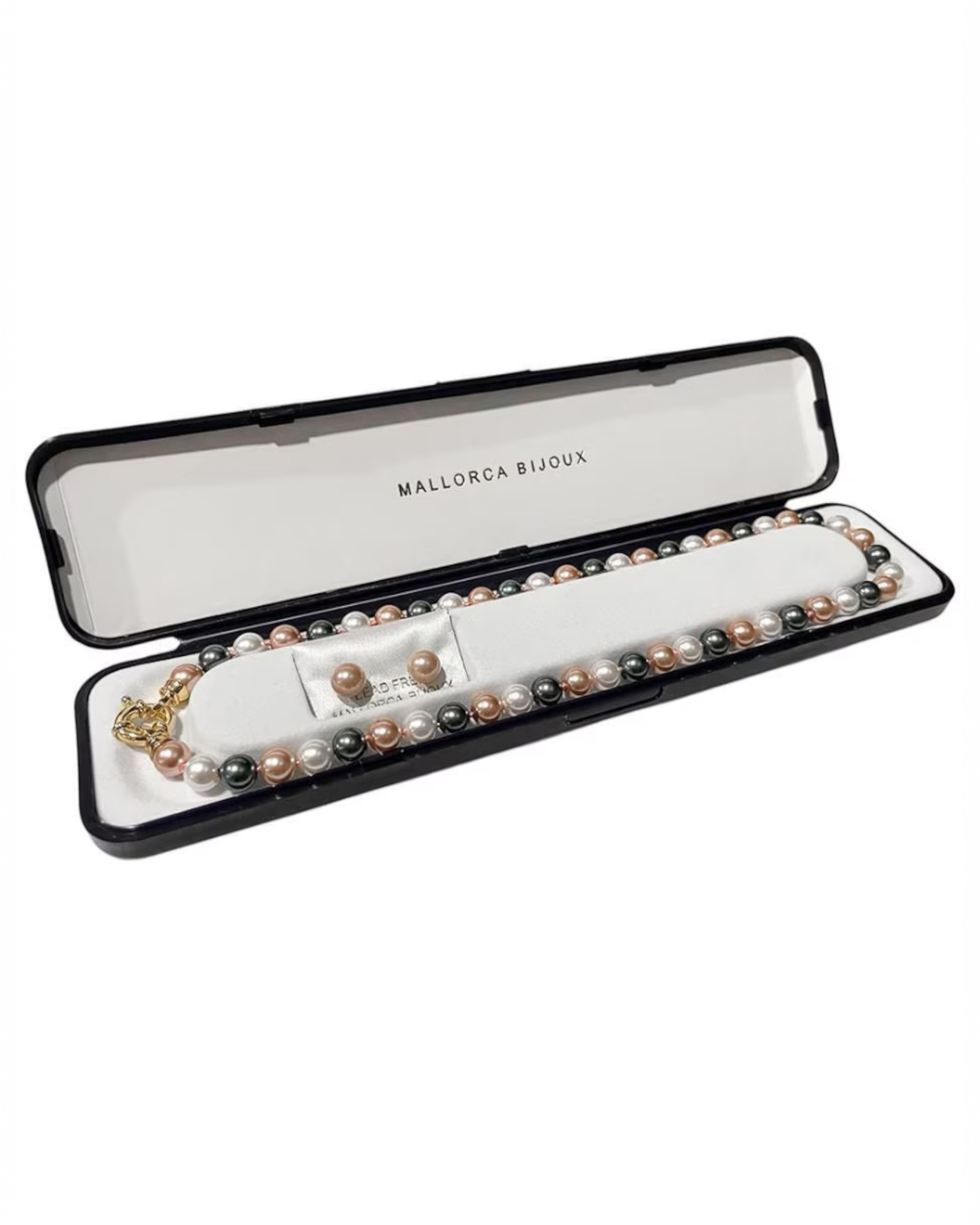 Juego Collar y Aretes | De Perlas Mallorca | Salmón Bicolor 8MM